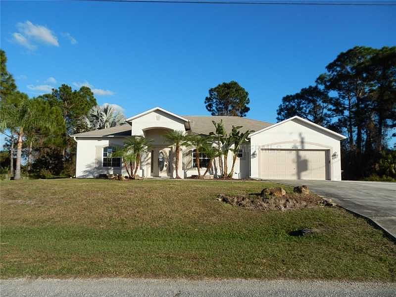 DOUBLE LOT FENCED! Recently Updated 3 Bedroom + Den & 2 bathroom home. Home is situated in the middle of 2 lots totaling just over a ½ acre. Home offers an oversized driveway that fits comfortably 7 cars and has a gravel RV or Trailer parking pad behind the gate. Inviting open floor plan features high ceilings throughout, NEW Kitchen Aid appliances, NEW garage door opener with My Q, NEW well equipment, NEW hot water heater, and NEW flooring and 5 ¼" baseboards throughout. Master suite offers a large walk-in closet, a private bath with dual sinks, garden tub and walk in shower. Outdoor entertaining area features an open lanai great for outdoor grilling, a private fenced double lot, and tons of space for kids, friends, and , family to run and play. Additional features: inside laundry, security system, and irrigation. Great community close to I-75, Murdock shopping & restaurant district, schools, parks, golf and just a short drive to gulf beaches. Don't miss this opportunity! Call for your private showing today!