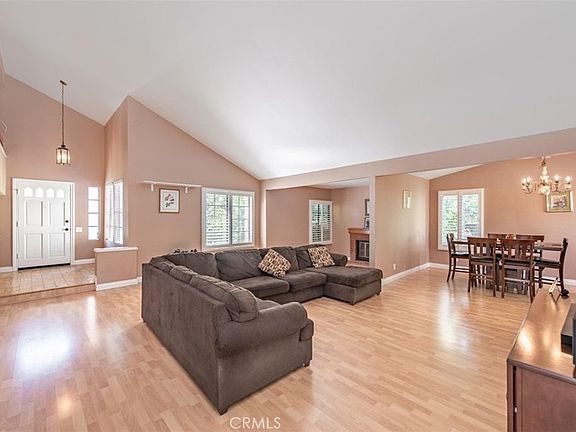 Step into the dramatic entry with vaulted ceilings leading to a bright, open living room and a cozy sunken conversation area with fireplace. The formal dining room adjoins a spacious kitchen featuring a bay window, pantry, double ovens, gas cooktop, and a generous breakfast nook overlooking the expansive family room below. The family room includes a wet bar, fireplace, full bath, and laundry area with direct access to the garage—designed for both comfort and gatherings.