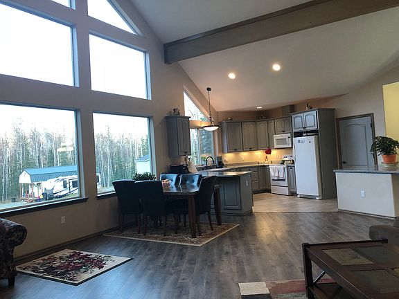 This house has vaulted ceilings, big windows infront of the kitchen. Kitchen counter tops are made from quartz, the House was custom built in 2016. 10 acres, Indoor heating, baldy mountain as the view. Carpets in the bedrooms. Full bathroom in the master bedroom, and walk in closet. Circle driveway. Complete laundry room, and complete bathroom in the basement. This house is out of city limits, you have your own privacy. And has a well for water. You can call me anytime to schedule to look at the house.