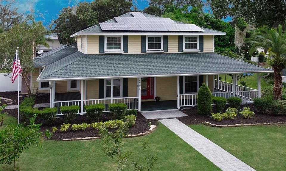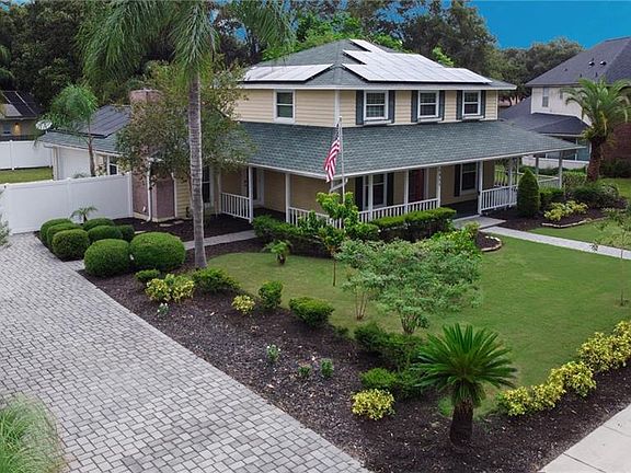 One or more photo(s) has been virtually staged. Florida Living at its best! Key West style home in the midst of million dollar lakefront homes in the exceptional TuskaBay community. Enjoy the outdoors on this 1/3 acre lot with ALMOST BRAND NEW screened in SOLAR HEATED SALT WATER POOL (2019), large covered LANAI with fans and pass-thru kitchen window, extensive PAVED outdoor patio area with KOI POND and FIRE PIT and still plenty of room to enjoy the lush green grass area in the fully FENCED yard. The huge WRAP-AROUND porch provides an area to relax and enjoy the evening after a hard day at play. Theres also a BALCONY off of the Master Bedroom when peace and privacy are what youre looking for. No need to worry about high electric bills! This home comes with a SOLAR-POWERED ENERGY SYSTEM (2019 - $23,490) and ENERGY EFFICIENT DOUBLE PANE WINDOWS with LIFETIME TRANSFERABLE WARRANTY. Inside this freshly painted 2542 sqft home: youll find MARBLE floors in the Foyer and Kitchen, Engineered WOOD FLOORS in the Formals Rooms, Family Room and Bedrooms, CROWN MOLDING throughout, FRENCH DOORS, KNOCK-DOWN ceilings, NEW LIGHTING, and more. STAINLESS STEEL APPLIANCES, Center ISLAND and GRANITE counters in the Kitchen. Family Room has GAS FIREPLACE, Built-in shelves and BONUS ROOM area for Kids toys, Desks to study, exercise equipment, or whatever you like. Bedrooms are all very nicely sized with BUILT-INS in the closets. Bathrooms have all been updated with NEW VANITIES, STONE COUNTERS, Mirrors and Lighting. Master Bath shower has UPDATED TILE and Rain Shower system. Roof 2017, AC 2017, Paved Driveway and walkway, Security System and Lighting, Transferable Termite Bond, Seminole County Schools, Close to 417, Restaurants and shopping. This is an amazing property that doesnt come along every day, so dont delay!