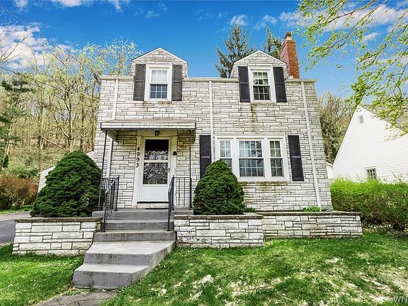 Highly sought after stone & brick hillside home in beautiful Lewiston NY. Located less than one mile to downtown Lewiston and just a couple miles to Lewiston-Queenston Bridge access to Canada! Three bedrooms and one bath make this a perfect starter home, downsizer or "snowbird nest." Wood carved mantle and spindles, ornate finishes, solid doors, trim and wood floors (under carpet) show the craftsmanship and care throughout this home. Tons of privacy in your breathtaking beautiful wooded backyard. Newer Furnace, HWT, and new water backup sump and pump by Frank's Basement. Detached two car garage. Accepting offers as received. Thank you for showing.