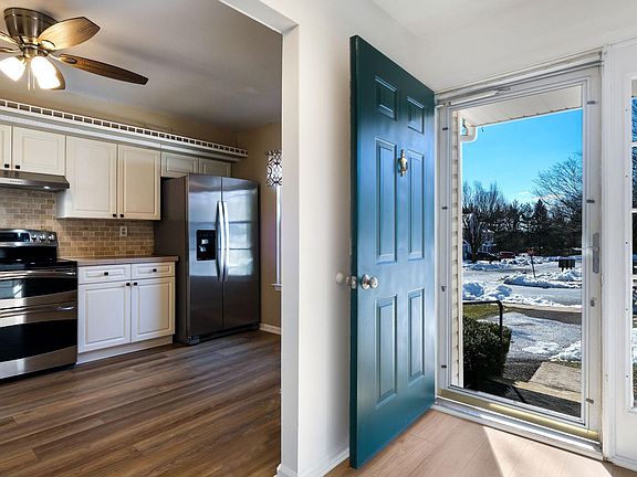 Discover the cozy vibes of this newly updated 3 bed, 2.5 bath END UNIT townhouse in Patriots Ridge. The location is ideal as It's just a hop away from Doylestown Boro, offering easy access to shopping, eateries, museums, and/or the train station or Route 611. Inside, find a refreshed home with hard surfaced flooring including in the kitchen with shiny stainless steel appliances, plenty of storage, and a roomy counter for your cooking adventures. The dining room connects seamlessly through a handy pass-through window. Kick back in the comfy family room, warmed by a gas fireplace with sliding glass doors leading to the backyard. Upstairs, the main bedroom sports a walk-in closet and its own bath. Two more decent-sized rooms share a bathroom, and there's even a convenient laundry area on the second floor. The basement has an additional 450 square feet of living space plus a storage room. Recent perks like fresh paint, new flooring, some new hardware, hot water heater, ceiling fans add that extra touch. Ready to check it out? Book your appointment now and make this chill spot your home sweet home.
