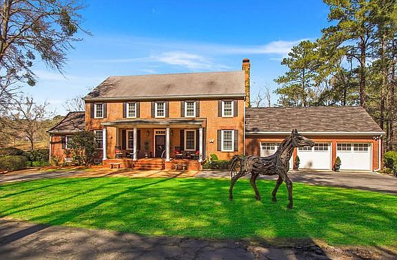 Hidden River Ranch features a beautiful brick traditional home tucked into a working equestrian facility encompassing rolling terrain, a barn with apartment, workshop and plenty of storage space, an 8-stall stable, jumping ring and dressage arenas, pastures, a stocked pond and swimming pool, all fenced. An abundance of living area with formal living and dining rooms and separate family room on the main level along with a 20 x 15 Rec room, a 26 x 14 den and 15 x 14 bedroom on the lower level. Crawford Creek borders on left side of property, close to shopping, churches, schools and professional offices yet tucked away for privacy.