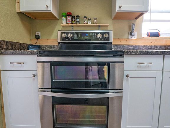 Top to bottom remodel on a 2004 blt all electric Goldenwest w/ 1836sf on cedar fenced lot in Windstone Village all age park (rent $900/mo.). Heat w/ certified wood stove in living room or forced air heat pump (heats & cools); vinyl windows w/ blinds; main BR/BA suite off LR w/ 3 BRs/BA off family room--open to dining & island kitchen w/ pantry. All BRs w/ WI closets. Utility room w/ door to carport for 2 tandem, carport shed & backyard: 8x15 shed & paver patio.