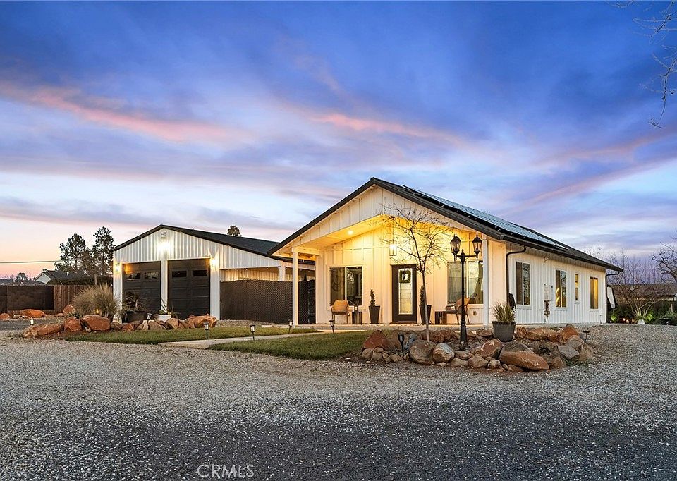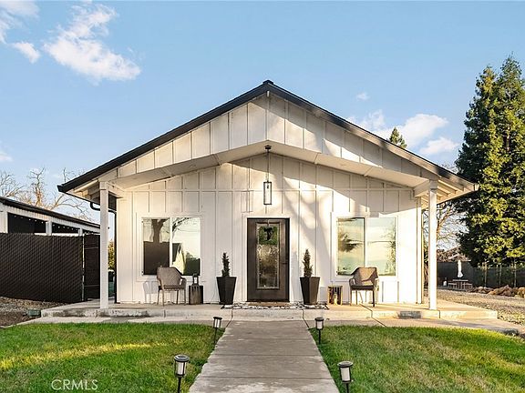 Experience luxury country living at its finest in this impeccably designed 2023 Modern Farmhouse, set on 1.06 acres of beautifully curated land with fully usable acreage, behind an automated security gate. Thoughtfully crafted with upscale finishes and an emphasis on style, and outdoor living, this 2-bedroom, 2-bath home offers approx. 1,105 sq ft of refined interior space paired with an expansive, park-like exterior that truly sets it apart. Inside, the home exudes modern elegance. The gourmet kitchen features quartz countertops, an oversized island (52" x 99.5") with cabinet storage on both sides, custom designer lighting, a wine fridge, drawer microwave, and a full KitchenAid appliance suite. Oversized tinted windows bring in natural light while maintaining privacy, complemented by specialty blinds throughout. Gas line was installed in the main living space, if wanted in the future for a gas fireplace. Seamless LVP flooring runs through every room, creating a warm, cohesive, and luxurious feel. Step outside and discover what makes this property extraordinary! The grounds are a dream for those who value space, nature, and outdoor living. A large metal barn offers room for farm animals, equipment, or creative use. The expansive raised-bed garden invites home-grown living, while the impressive collection of fruit trees—avocado, cherry, peach, and more—adds both beauty and bounty. Mature shade trees and a spacious entertaining patio with rustic Gazebo, create inviting spaces to relax, gather, and enjoy the peaceful surroundings. As evening falls, the property transforms. Extensive specialty lighting illuminates the entire landscape, giving it the ambiance of a private park—warm, magical, and unforgettable. Additional upgrades include an elaborate 3-zone Ranchio sprinkler system, OWNED SOLAR, full perimeter fencing, and a garage/shop with convenient pull-through access. There’s abundant parking for boats, trailers, and RVs, with wide circular driveway making it easy to maneuver, making the property as functional as it is beautiful. With an approved Town permit already in place for an ADU, the potential here is exceptional. This home blends luxury design, modern efficiency, and expansive outdoor living into a rare offering that feels like a retreat!!
