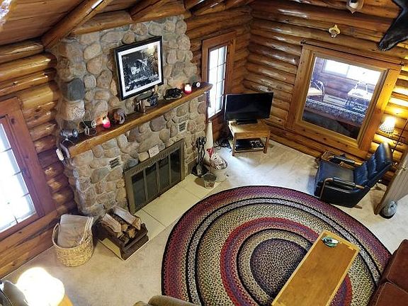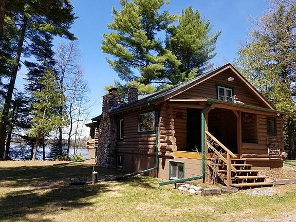 Second Black Lake - Full Log Home, 4 br, 2 bath with 21 acres land! Quality year round home, refinished hardwood floors, new windows, new appliances with all the Up North Northwoods ambiance. Living room w/beautiful field stone fireplace, new carpeting & cathedral ceiling; large lakeside sun room w/amazing view that leads to open sun deck just a few feet from waters edge. Has main level bedroom & bathroom, plus loft bedroom. Walkout lower level w/family room, gas field stone fireplace & patio doors that lead to the waters edge, 2 br, plus another room w/closet, bathroom w/laundry area & mechanical room. Outside features a level nice sand beach area, pier, lakeside fire pit area great plus old-style field stone grill. Over sized garage w/workshop area, one car stall, attached lean-too w/additional storage,circular driveway All this sits on 21.48 acres land with 426 ft sand shoreline on Second Black Lake, Western Exposure! Move right in - Comes completely furnished!