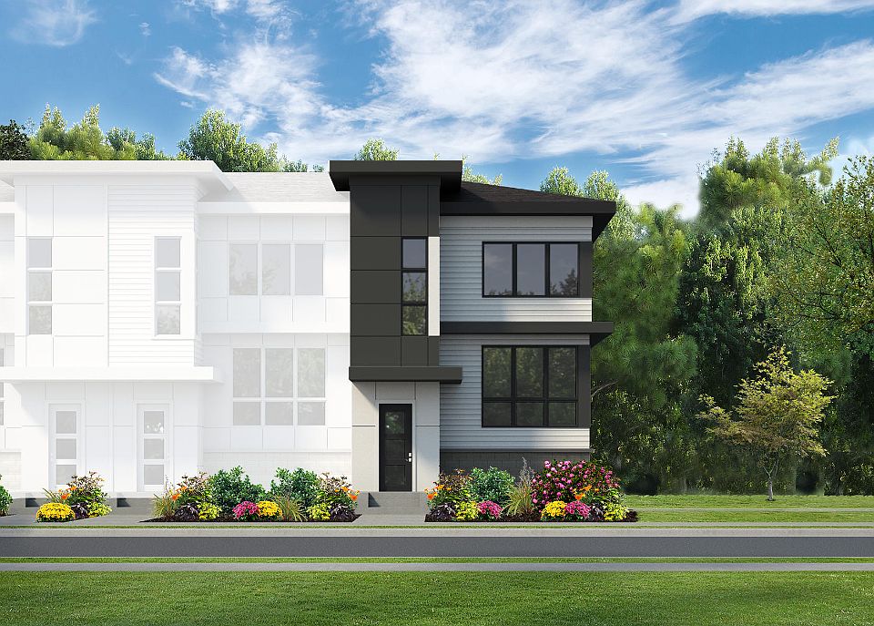 The Modern Rowhouse. Our two-story attached townhome with tuck-under garage is a rowhouse at heart with thoroughly modern sensibilities. This end unit offers a central dining room with expansive side-facing windows, and a kitchen that opens to a private glass-railed deck. The two-bedroom plan features an upper-level loft and light-filled owner's suite with freestanding tub. Options include a third bedroom and numerous built-ins to customize your space.*Home prices refer to starting from price and do not include optional home elevations, options, upgrades, or lot premiums. Prices, square footage, and availability are subject to change without notice. Photos, virtual/video tours, and/or illustrations may not depict actual home plan configuration. Features, materials and finishes shown may contain options that are not included in starting from price.