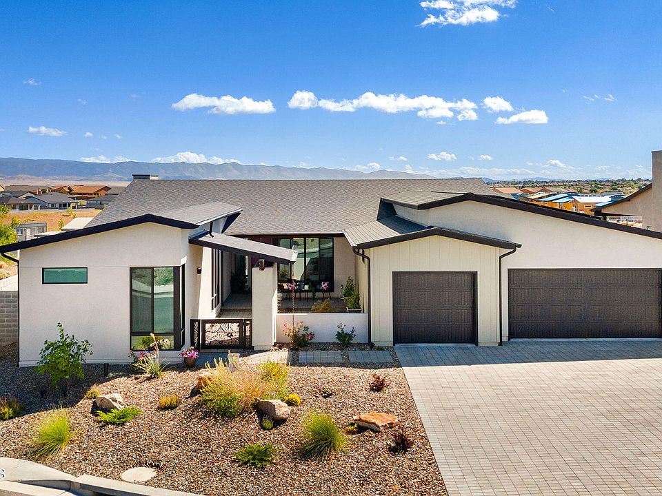 Your chance to own a gem with panoramic views of Mingus Mntn. This stunning home offers a beautiful gated courtyard, expansive patio, 3 bedrooms, 2.5 bathrooms, split design, flex room, 10' ceilings, spacious 3-car garage. Designed for style, comfort, and convenience, this home is sure to impress! Kitchen aid commercial-style gas range-top, oven and microwave, Fisher & Paykel double-drawer dishwasher, island with added storage, huge owner's closet, fireplace for those cozy nights. Your home is built with the some of the highest Energy efficiency with owned solar included, walk-able neighborhood next to Iron King trail and featuring a 10,000 sq.ft. clubhouse in the Jasper community, which is a place to make lifelong friendships and memories.