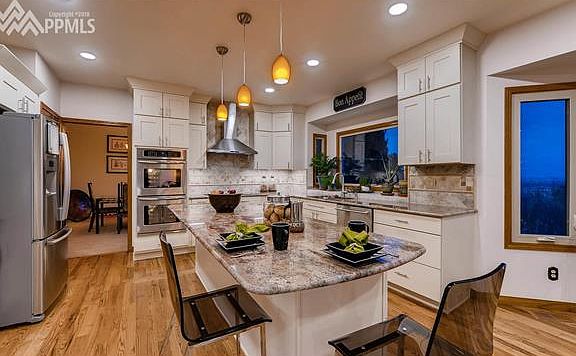 Enjoy multiple fireworks displays in the Springs from the comfort of your own deck as you hear the 4th of July music wafting up the mountain from the Cheyenne Mtn. Resort???s yearly celebration. Labor Day weekend watch the hundred or so Hot Air Balloons fly across the city on all 3 mornings. Every night of the year, the lights of the valley provide a 365-day twinkling ???fireworks show???. You don???t have to leave home, just grab a glass of wine or your favorite book and relax. It???s a nightly ambience that you???ll never get over. From your deck enjoy meteor showers, harvest moons, epic super moons that bathe one in moonlight while sleeping. And the spectacular sunrises???breathtaking! You will witness so many beautiful natural events sitting on your deck. You will never tire of taking pictures of wildlife from this home. Wild turkeys & hummingbirds are frequent visitors, deer wander thru the yard. The different seasons bring changes from the fawns in late spring to antlered males in the winter. You???ll see the birds fly & swoop at eye level instead of high above you! These are the kinds of uncommon things that set a house apart from all others. Guests & friends alike find themselves enjoying an amazed yet relaxing time while in your home & want to come back for this experience. A Park in front & open space behind you with the top of Cheyenne Mtn. so close it looks as though it???s a few blocks away, the owners describe it as ???Living a dream come true???. And???. we haven???t even begun to list the Extensive Updates yet and I???ve run out of room to describe the rest! Come take a look and see.