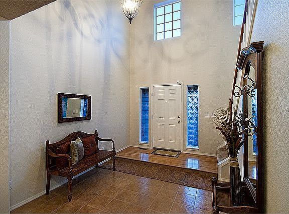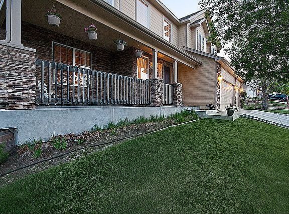 Beautiful 2Story Home on Corner LotCovered PorchStacked Stone TrimWalk to ParkCentral AirSecurity SystemTiled Entry wHigh CeilingsIsland Kitchen wHardwood Floors EatIn Nook PantryRaised Panel Hickory Cabinets Updated AppliancesFamily Rm wGasLog Fireplace Formal Living Dining Rm wArched EntryLaundry 4 BRMS UpVaulted MBR w5Piece BathFull Bsmt w Wet Bar Rec Rm Lge BR and Full BathStorage3Car GarageStamped Concrete PatioBacks to Walking Trail to Area Pool Tennis Courts