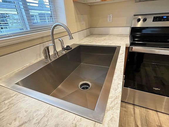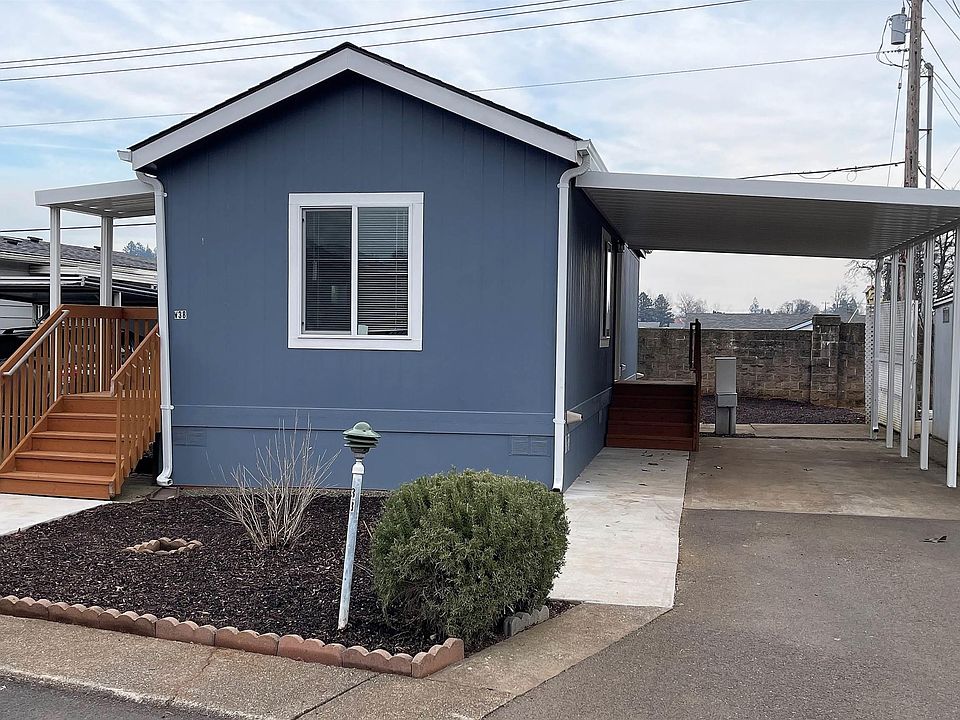 New single wide Skyline manf. home. Living room with vaulted ceiling, Alder cabinet in kitchen, stainless appliances, medicine cabinet in bathroom, stand up shower. New carport. Sale includes manufacturers warranties.
