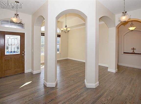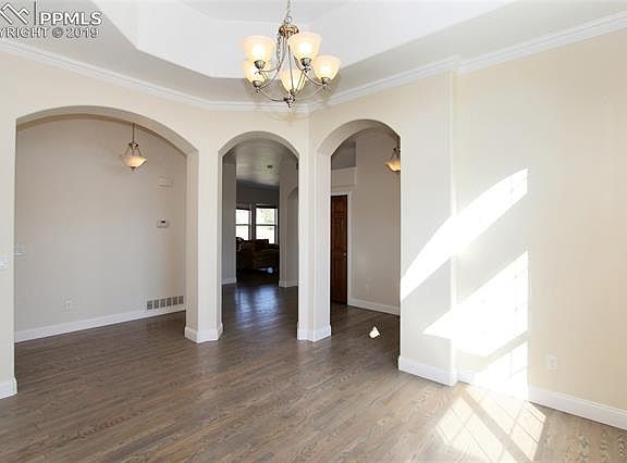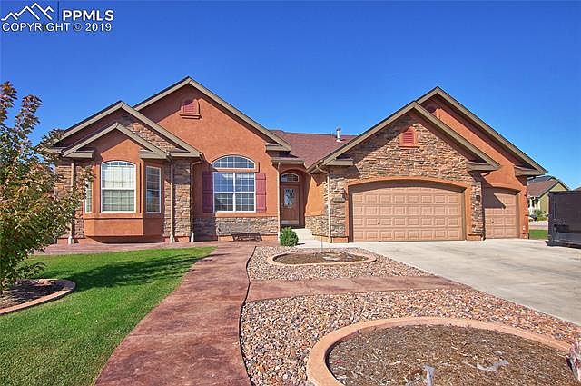 Get ready to fall in love with this beautiful District 3 ranch style 5 bedroom home with 4,629 sq ft. You are sure to love the openness and fluidity that transcends throughout the entire main level. The huge master bedroom is perfect for those that want their tranquility and the office is ideal for those that need their working space. This home boasts lots of natural lighting, warm paint colors and stunning wooden floors that you are sure to love. Prepare to be captivated by the love and pride that this home displays.... Welcome to your beautiful District 3 ranch style home encompassing 5 bedrooms, 3 bathrooms, and a 3 car garage with 4,629 square feet of substantial living space. As you enter, you are greeted with vaulted ceilings paired with beautiful hardwood floors, arches and warm inviting paint, creating an eternal style. This home will reveal the character and taste of those accustomed to the finest in amenities, quality and lifestyle. Forget your stresses with a good book next to your gas fireplace in the serene living room. Your gorgeous eat-in kitchen features maple cabinets and an abundance of counter and cabinet space, matching appliances, and a walkout to your beautiful landscaped backyard. The gorgeous concrete patio in the backyard is perfect for those that love to entertain. Your private master bedroom will leave you feeling indulged with your adjoining bath featuring a soaking tub, walk in closet. Your large finished basement provides the extra laundry room and the living space you demand with 3 bedrooms and a full bathroom. This home is perfectly situated to enjoy the close proximity to schools, shopping, military bases, I-25 and the Powers Corridor. Start your journey by making your appointment today and wind up home.