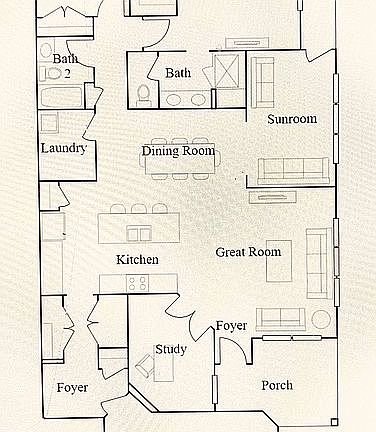 - RoomDimensions: Laundry Room 7x6, Kitchen 16x13, Great Room 18X17, Sun Room 15X10, Den/Library 10x9, Dining Room 17x9, Bedroom 2nd 11x10, MasterBedroom 15x14