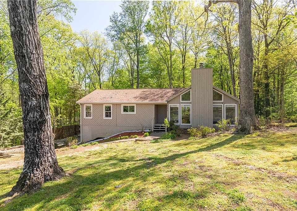 A RANCH home in Roswell with almost an acre lot for less that $400,000??? You'll love this ranch home on a full basement with a drive-under garage, workshop and plenty of storage. SS range and dishwasher with granite countertops and beautiful tile backsplash. Custom built-in bench for dining, stone fireplace, and dark hardwood floors throughout main living areas. You'll want to have everyone over for get togethers with an amazing amount of outdoor entertaining area with a two-level deck, screened in porch, and wooden fort with a slide and climbing wall for the little ones. This huge corner lot has a tiered back yard going down to a creek that runs along the property line along with your own private screened-in pavilion to enjoy the peaceful setting and babbling waters. Fresh paint throughout and move-in ready! Come see this gem while it lasts! This home comes with a fully-paid one-year home warranty!! Welcome home!