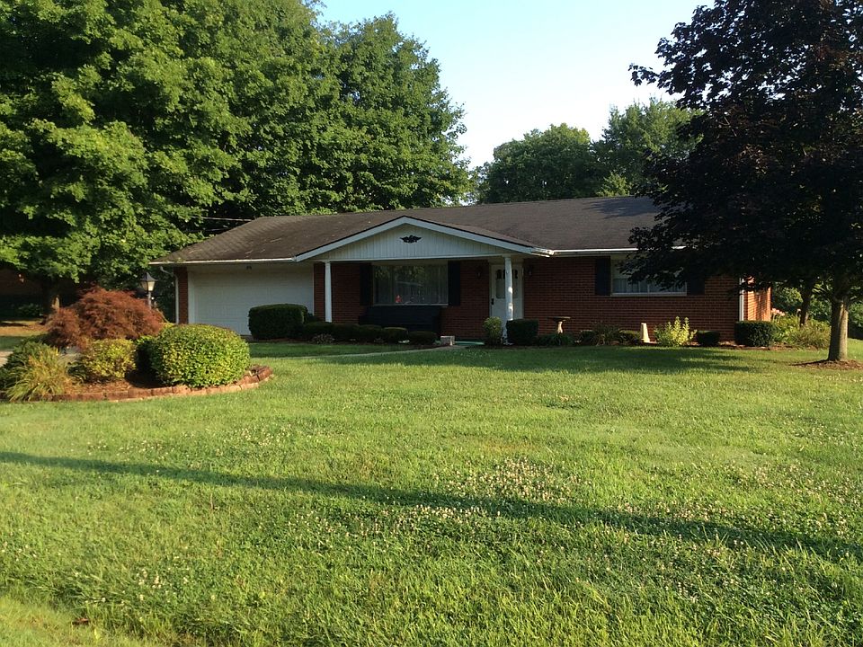 You will love this acre setting, with its mature trees. The brick ranch offer 3 bedrooms, 1 baths and has no steps. It is handicap accessible. The large eat-in kitchen has lots of cabinets. The attached family room could be used as a large dining room, and has a walkout to the patio. This great home qualifies for 100% financing through the USDA.