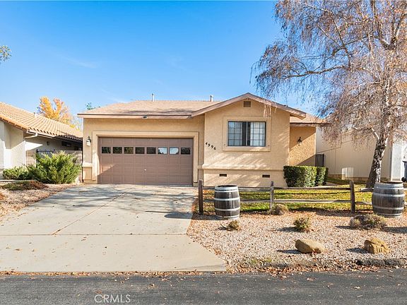 MOTIVATED SELLER! Welcome to 4996 Pretty Doe, located in the beautiful Heritage Ranch community at Lake Nacimiento. This well maintained single level, 3 bedroom 2 bathroom home offers a spacious floor plan as well as an extra deep garage ready for your lake toys. Enter through the front door and to the right be greeted with a open living room area with a cozy fireplace. The primary bedroom is located off the kitchen area offering privacy and views of the backyard and greenbelt. The two guest bedrooms are located to the left of the entry way along with a full guest bathroom. The backyard backs up to a greenbelt that allows for you to enjoy the views and nature that Lake Nacimiento community has to offer. Call today for a showing!