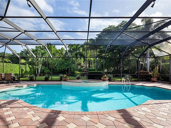 Timeless, exquisite home in one of Naples' best locations offers fabulous details and updates. Signature outdoor feature of this sprawling home is massive pool and deck with new screening, refinished pool, one-of-a-kind outdoor kitchen with fabulous stone detail/seating areas, all with backdrop of huge park-like yard. In absolutely immaculate condition, this home boasts hurricane protection (impact & manual), 2 new HVACs, house generator, and gas-fed pool/spa heat, indoor/outdoor cooking, and H20 heater. Finish details are elegant and well designed, including a beautiful master suite with two walk-in closets with built-ins (one with hookup for laundry), private balcony, and marble bath (2nd master on 1st floor), huge kitchen with plentiful glazed cabinetry, 6-burner gas stove, gorgeous custom hood, and built-in desk, all opening to large family room and butler's pantry with wine fridge, icemaker and sink. The richly finished woodwork and stone wine bar in the home theatre perfectly demonstrates the quality of the home and can be transformed into a beautiful den with ease. Massive storage closet, closet built-ins throughout, huge three-car garage, and more complete the package.