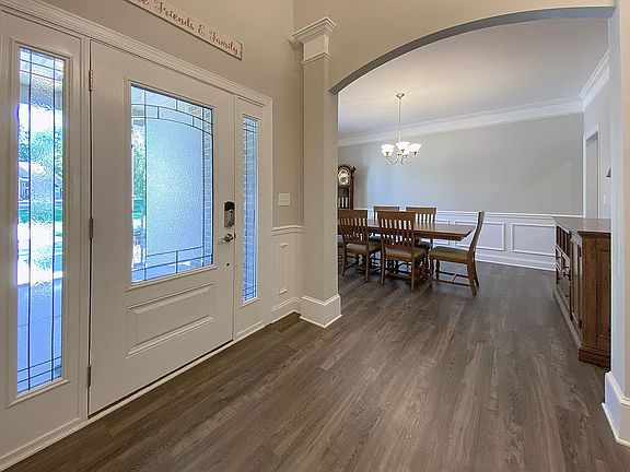 You will love this spacious, 5-bedroom home with downstairs Master suite in the desirable Bluffs neighborhood and only a stone's throw from Lake Wylie. This home sits on a large, private, wooded lot and backs up to woods (which is common area and will not be developed) at the end of the cul-de-sac. The home boasts numerous upgrades, including an oversized 2 car garage, foyer with barrel-arch leading to great room with 12 foot coffered ceiling, four-season sunroom, fenced in yard, storage shed, 36” gas range, stainless appliances, Luxury Vinyl Plank (LVP) throughout first floor, tile, tankless water heater, formal dining, butler’s pantry, laundry room, bonus room, fully wired for high speed internet throughout (both AT&T fiber and Comporium available to house), and much, much more. This large open floor plan includes 2 additional bedrooms and full bath on the 1st floor, large walk-in pantry, and huge master closet. Upstairs you will find 2 bedrooms with a full bath and well-appointed closets; an oversized bonus room makes this space perfect for movie nights or a virtual classroom! Oversized garage for 2 cars, a workshop, and even room for a pool table (20 x 35!). Great outdoor living with spacious deck and fire pit. Enjoy your large front porch perfect for watching the South Carolina sunsets. An awesome and well-loved home. Enjoy the great neighbors and the award-winning Clover schools!