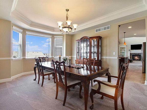 Welcome to your dream home in the desirable Meadows community of Castle Rock! This stunning 5 bedroom home boasts a professionally finished walk-out basement, providing the perfect space for entertaining guests or cozy movie nights. The spacious kitchen features a large island, perfect for meal prep and casual dining. You'll love the grand curved staircase that greets you upon entering, adding a touch of elegance to the space. With two fireplaces, including one in the family room and one in the primary bedroom, you'll have a warm and inviting atmosphere year-round. Enjoy access to the community's parks, trails, and shopping, and come home to luxury and comfort every day. Smoke-free! Move-in ready!