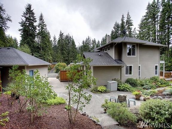 Bright, open and dramatic architecture featuring a curved staircase & floor to ceiling windows overlooking a backyard paradise w/3 water features with waterfalls, ponds and mini streams, garden area with green house + raised beds, incredible tree house, and private gated entry. Spacious and well designed kitchen, huge river rock fireplace, soaring open ceilings and large rooms, huge basement w/3/4 bath! 3 car detached garage & hardwired GENEX 10k generator. Plumbed for sauna. Private 1+ acre!