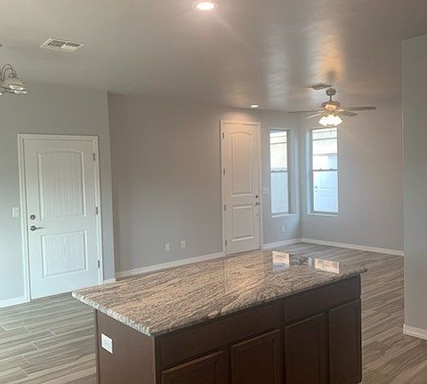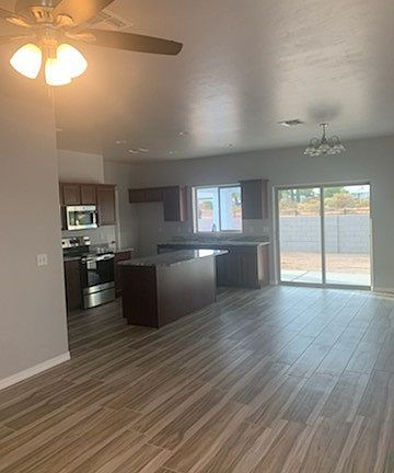 New construction 3 bedroom, 2 bathroom, open floor plan. Tile floor in kitchen and bathrooms, granite counter tops and solid wood cabinetry. 2X6 construction, above required insulation. Ceiling fans in living room and bedrooms. Stainless steel appliances, microwave, dishwasher and oven/ range, inside laundry room, garbage disposal. Landscaped front yard and block wall around backyard, sprinkler system, tile roof. Pictures are of model of home to be completed. Owner/Agent