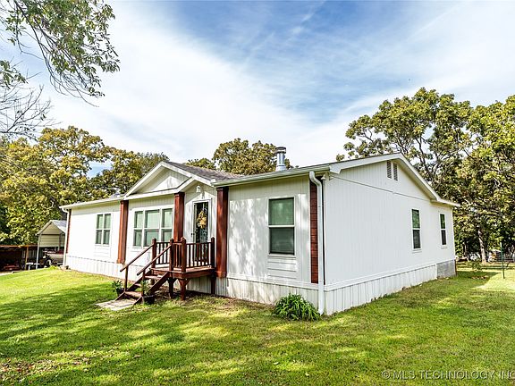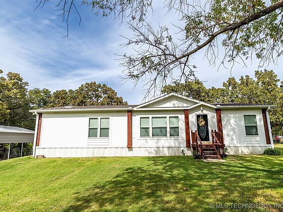 Seeking a rural place to live close to town? There's just one place to look- this fully fenced-in property sits on almost an acre. With an extra 300+ square ft new add on, making this Platinum Solitaire a 4 bedroom, 2 full bath almost 2,000 square ft home. There is a spacious wooden deck with a stunning view, front gutters installed, and a large carport. Includes a chicken coop with eighteen nesting boxes, a 4-stall livestock lean-to, and a small equipment lean-to. Quiet location down a dead end road with Cimarron Turnpike just a few miles away. Give us a call to arrange a showing!