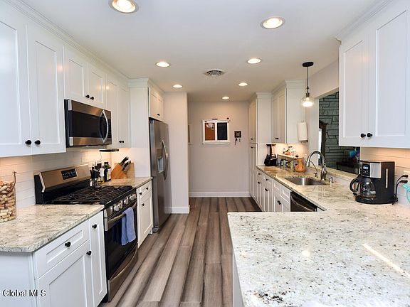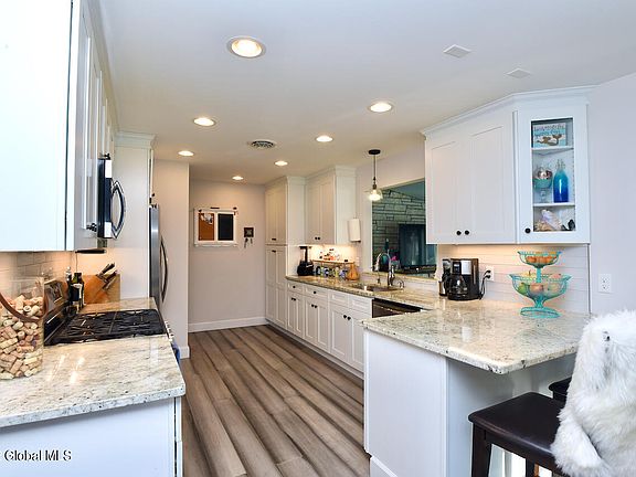 Modern and spacious 4BR 3 Full Bath Twin home in Burnt Hills Schools on a .67-acre private lot. Completely renovated in 2018 including all new electrical, plumbing and HVAC. Open floor plan, modern kitchen with granite, stainless appliances. Open to dining room, family room and patio. Tons of picture windows making the home feel light and bright. Bamboo flooring, Berber carpet, ceramic tile and LVP flooring. Walkout basement with approx. 560 sq ft finished with a separate furnace. Oversized 2 car garage with sub-panel and newly epoxied floor. Fenced in backyard with large patio, full home reverse osmosis and soft water filtration system. large cinder block wall separates home from the semi-attached unit next door. Hot Tub and cement fire table NOT included.