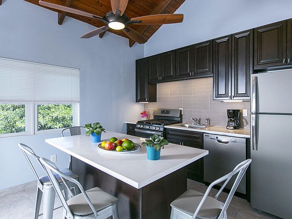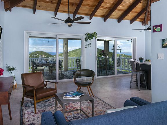 Bogie's Villa conveniently located on Gift Hill Road features four breathtaking rental units situated over a stunning pool area with views of the sunset and St. Thomas. This multi-unit rental home is newly renovated with updated cabinets, appliances, furniture, roof, Tesla Battery and Solar system (NET METERING PROGRAM) as well as a brand new pool and patio installed. This profitable home is the perfect mix of long and short term rentals, as well a an excellent opportunity to live on property while you manage your investment.