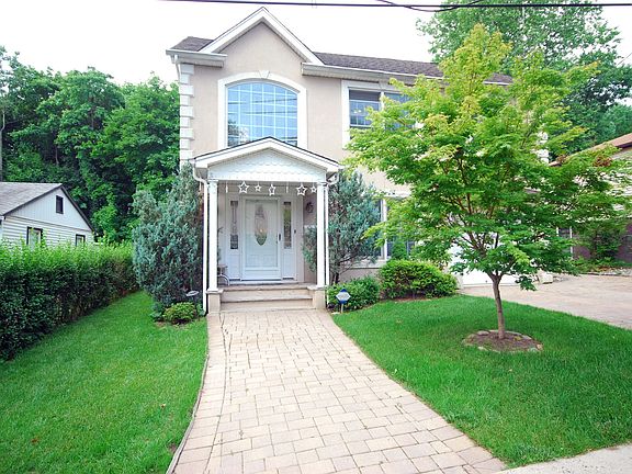 Step into style in this newer construction 4 BR 2,5 bath home with high ceilings, hardwood floors, and tons of light! First floor boasts Living Room,Large EIK with S/S appliances ,granite countertops,breakfast bar and center island. Tons of cabinet space!! Open floor plan leads to Family room with gas f/p and two sets of sliders out to secluded fenced in landscaped yard with gazebo, shed and paver patio. Laundry room also conveniently located on first floor. Open staircase leads to large sunny landing on second floor. Spacious Master Suite with cathedral ceiling and bath w/ soaking tub and shower. Walk in closet.. Garage has heat and A/C. NYC transportation a few doors away! Centrally located to highway,schools and shopping.