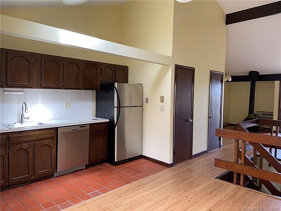 Contemporary condo in private wooded setting but conveniently located-open floor plan with vaulted ceilings and skylight-Kitchen with newer stainless appliances-custom island in process of being built-living room with sliders to private deck and free standing fireplace-new vinyl plank flooring-Unit has 2 BR's 1 1/2 baths and ample closets and storage. W/D hook up in one of the guest bedroom closets. No pets or smokers please-credit and background check required. (Owner/Agent)