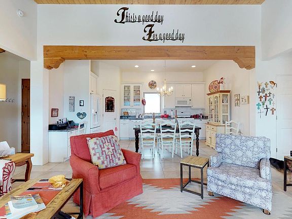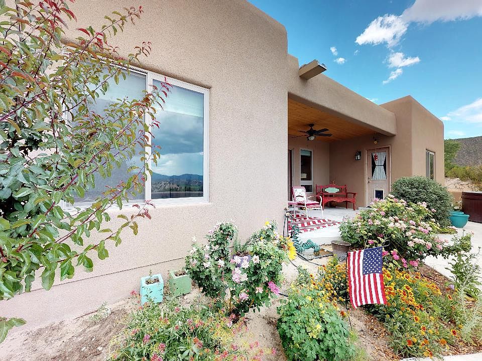 A home with amazing, ever changing views, that can be enjoyed everyday and every night, by just lounging around, is located in a gated community, with easy access to hwy 285 and 84. Two bedrooms, two baths, a great room, small laundry space, a garage, and spacious kitchen is all anyone will need to enjoy the gifts of life and the natural landscapes. Also included is a RV pad. Minutes away from Taos, Santa Fe, Los Alamos, Abiquiu, and Española. The location offers great opportunities to enjoy the mineral springs, golfing, fine dining, medical assistance, fine arts, and so much more. An exquisite place for an individual, a couple and occasional guests. A perfect home with low maintenance and complete tranquility.