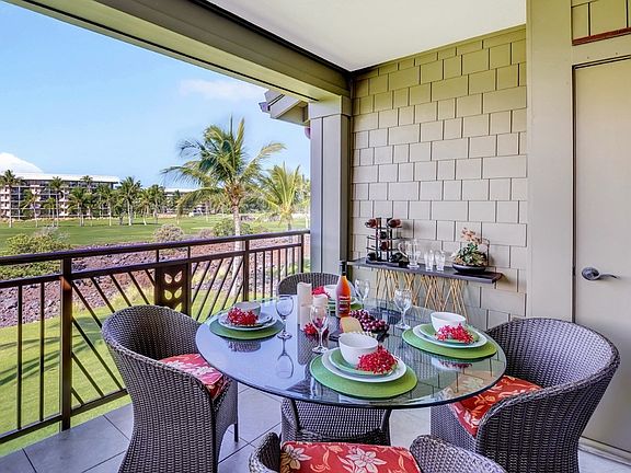 This 3 bedroom/ 3 full bath is the largest floor plan in the complex of ONLY 24 buildings. 2 story townhouse style has 2 lanais facing the golf course and distant ocean views. Fabulously furnished, sold turn key minus a few owners personal items and a few pieces of art. This Floor plan offers high ceilings and the largest kitchen plan for that very open feeling. Finishes include Granite counter tops, stainless steel appliances and custom wood cabinets. NEW Trane AC unit installed in 2020. On site you will enjoy the Private Oceanfront restaurant, bar , pool and workout facility. Pool has a Keiki pool, sand bottomed hot tub. Covered lounge areas near BBQ for your use! Tennis and Basketball court also adds to the complete resort amenities included inside the gated community. If you do want to venture out..... the Waikoloa Beach Resort boasts 2 golf courses, Shopping centers, Sandy beach and many exquisite restaurants and even a luxury cinema.