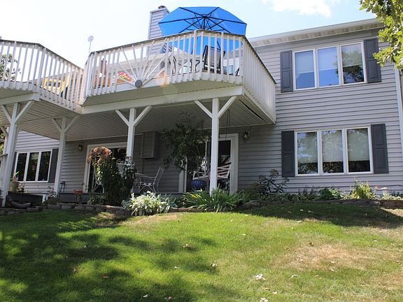 With 5 bedrooms and 3 full baths there is more than enough room for you and your friends in this clean and updated waterfront home. Open floor plan, walk out main level to the 14 x 28 deck overlooking the lake, deck has composite flooring. Master suite in located at one end of the home with 2 more guest rooms at opposite end of the house. Master bedroom and bath have been updated, has his and hers closets. 2 guest bedrooms has a full bath between them. Family room is open to the kitchen and shares room with dining area. Kitchen looks into dining area and has a breakfast nook attached to it. Laundry room is on main level just off the garage entrance. Lower level has 2 large bedrooms, 1 full bath, 2nd kitchen area and large family room with walkout doors to the lower level deck. Firepit is at waters edge.