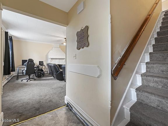 Large home in a nice location. Huge living room and a large kitchen. There's a first floor bedroom and a first floor full bath. The second floor has the primary bedroom, two more bedrooms and a full bath. An additional room on the second floor opens to the deck. The walkup attic is finished and provides plenty of storage. There's an enclosed rear porch and a fenced backyard. Great potential! Come take a look and make this house your own.