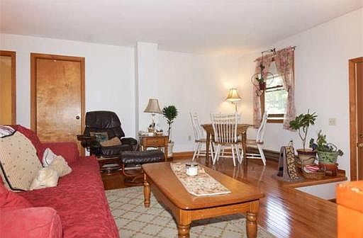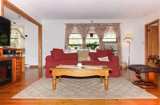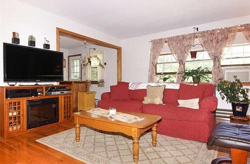 Happy home. Seller sad to be moving from home where he raised his 3 children. Fabulous flat yard hosted innumerable family parties and celebrations. Stone Patio for romantic drinks before dinner or relax w/morning beverage. This raised ranch has sunny living room with hardwood floors. Kitchen with island for easy food preparation. First floor Master will accommodate king bed. Full bath on first floor. Two additional bedrooms w/ full bath and large family room. Permitted wood stove. Separate storage and laundry room. Seller has maintained this great home.