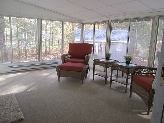 Wow! This home has ungone an amazing transformation. Exterior improvements include: roof, windows,shutters, freshly painted siding, and landscaping. The shed also has a new roof, window and shutters. It is freshly painted to match the home. Interior improvements include: fresh paint and flooring throughout. New ceilings in Kitchen, dining room, living room and master bath. Kitchen has new cabinets, granite counter tops, s/s appliances, sink and updated plumbing. There is recessed lighting in the kitchen, dining room and living room. Laminate plank flooring in the kitchen and dining room, carpet in living room, hall and bedrooms.Both bathrooms have new vanities, sinks, comfort height toilets and updated plumbing. Master bath has new walk-in shower. Porch has been updated with new carpet, new slider to the front porch. French doors lead into the large living room with beautiful corner wood burning fireplace. This home has oil heat,central A/C, and a lawn irrigation system.Price does not include share.