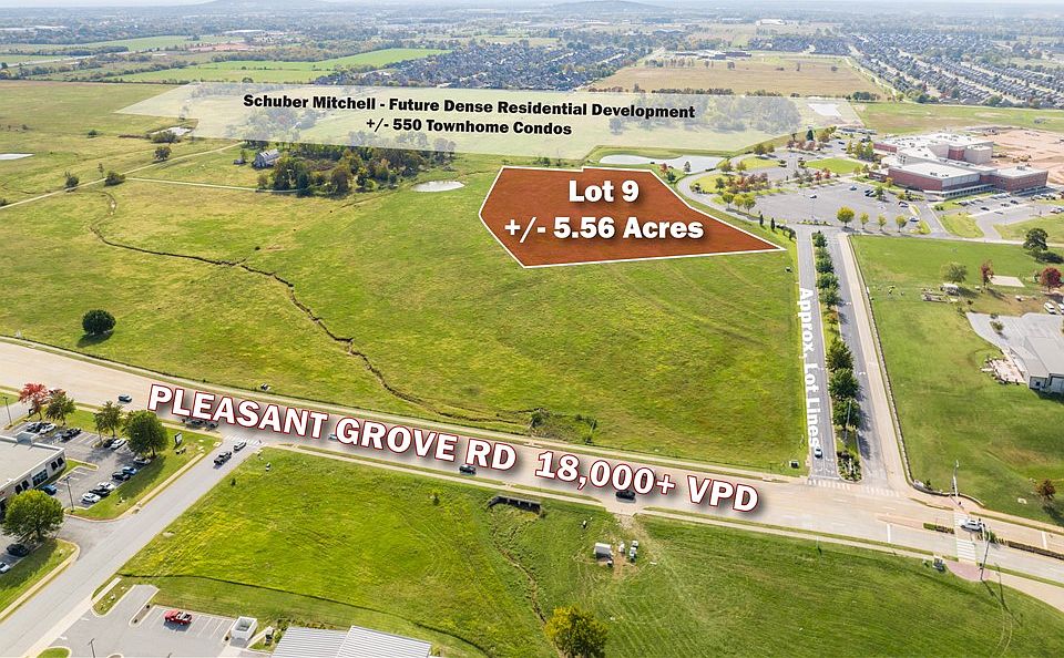 preliminary; shape, size, and access may change to suit the end user. Surrounded by top retailers—Walmart, Starbucks, Chick-fil-A, Casey’s and a future Dick’s Sporting Goods—this location is ideal for high-traffic commercial use. Traffic counts reach +/- 110K VPD on I-49 and 18K on W Pleasant Grove Rd. Just 2.5 miles from Top Golf and Walmart AMP, 10 min from Walmart’s new HQ, and under 20 min to XNA. UAMS is building nearby, and Schuber Mitchell Homes plans +/- 520 housing units. Avg. household income within 1 mile is +/- $170K—fueling growth at this dynamic site.