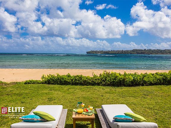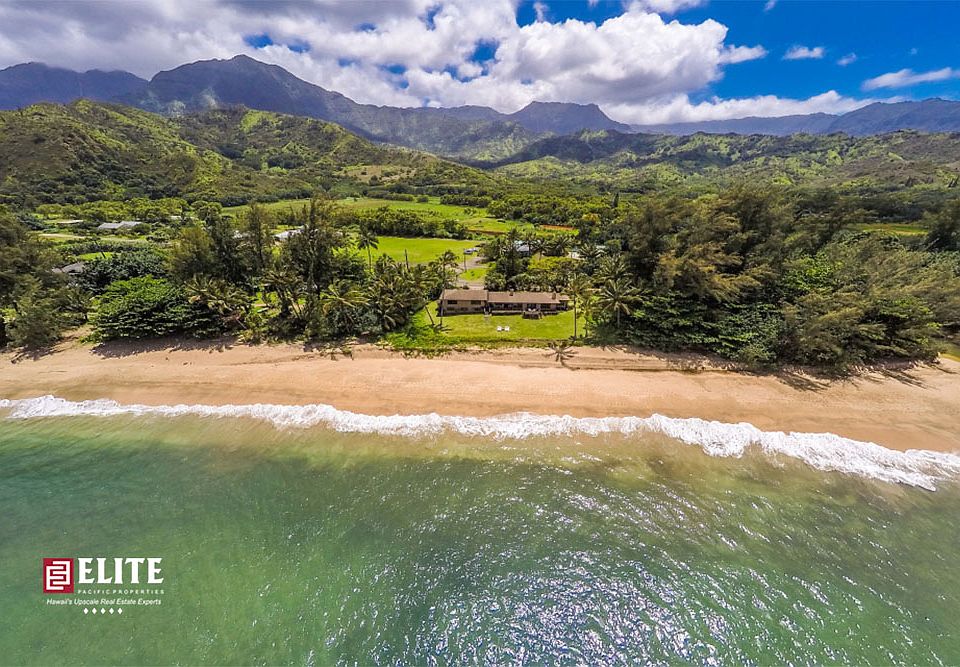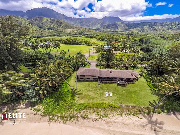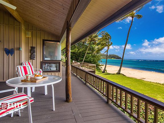 A peaceful and pristine oceanfront estate located at the far end of Hanalei Bay. Enjoy this secluded setting away from the crowds and hustle and bustle of town. This one of a kind property boasts endless ocean and white water vistas. View the entire Hanalei Bay from your living area, lanai and bedrooms. Plenty of covered exterior living space for outdoor dining plus a spacious sun deck and private back yard. This property features mountain and waterfall views from the front and is surrounded on either side by Bishop Trust Estates land (currently leased by Waipa Foundation). Watch the sunrise, moonrise and rainbows over Hanalei Bay from this unique setting. Relish the ever changing sights and sounds of oceanfront living including white water waves, surfers, paddle boarders and summer time boats. Take a stroll in the sand to Hanalei town or walk to the farmers market nearby. North Shore oceanfront living doesn’t get any better than this! Total rebuild after Iniki in 1993. New roof in 2009.