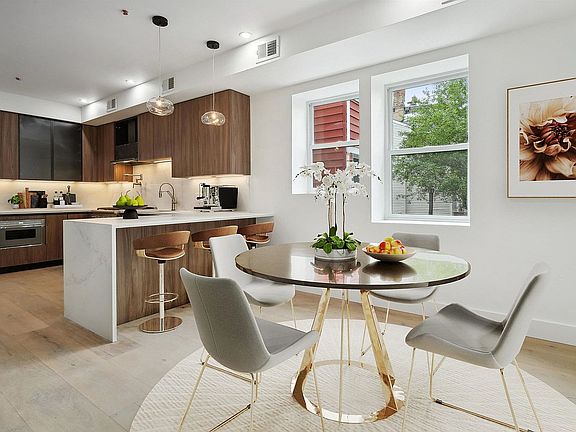 Introducing 360.5 5th, Downtown Jersey City's Newest and Most Exciting Residential Address! This sprawling 2,350 sq. ft. modern masterpiece in the heart of downtown Jersey City sets the bar for space, opulence, and liveability! Newly constructed for today's designer-driven family, including 4 stunning bedrooms, 3 magnificent spa baths, and a dedicated home theatre/gaming level are only the beginning. Just 1 of 2 bespoke homes in this notable building, Residence 1, is a stunning triplex with private backyard and parking area for up to 3 cars (unheard of in a city environment!). Gorgeous 12" wide-plank European oak flooring throughout, soaring ceiling heights, solid-core shaker style doors offset by black hardware and hinges, oversized Andersen designer-series glass window walls, and horizontal gunmetal staircase railings. A true culinary kitchen by renowned Italian firm Scavolini featuring natural pecan oak flat-paneled and glass cabinetry with anthracite metal framing, Thermador stainless steel appliances, book matched carrara bianco quartz countertops and backsplash, drawer microwave, pot filler, in-sink disposal, exterior venting exhaust hood, linear LED undercounter lighting, and dedicated Chef's counter/breakfast bar. An additional pantry closet is perfect to house all of your bulk items. This glamorous and functional kitchen seamlessly flows into your oversized living/dining room. Bathed in brilliant light though oversized windows, you'll enjoy years of memorable gatherings here, all while framed in serene open-sky, treetop, and protected views over the embankment. When the summer breezes call, you can move directly onto your private backyard oasis for grilling, dining, reclining, entertaining, and al-fresco enjoyment.....with such grand proportions, almost any outdoor games are possible. The unlimited versatility and design options in this private outdoor haven are endless. Have 1, 2, or 3 cars? Not a problem, as you have plenty of room for any or all your vehicles and toys with off-street access for complete privacy....and, of course, charging stations are a possibility as well! No need to ever leave as your entertainment level lends itself to limitless choices......billiards, home theatre, wine cellar, children's playroom, man-cave/she-shed, sauna/steam rooms, the options to create your own individual space are yours! When it's time to relax and unwind, your primary suite is a sanctuary unto itself. King-sized proportions with custom built-in dressing area and wardrobe, leads into your windowed spa-bathroom by Porcelanosa with Japanese bidet, dual floating vanities in snow and walnut, stunning stone tile, and rain head shower. Two additional bedrooms, as well as another spa-like bathroom reside on this level, along with a cleverly designed second entrance to the home. The main level features another private bedroom and bathroom which lends perfectly for an au-pair/nanny arrangement, or privacy for extended family and guests. Tankless hot water systems, top tier mechanicals, soundproofing systems for the floors and walls, LED designer lighting throughout, laundry room with vented full-sized W/D, building fire suppression system with sprinklers, and a 5-year tax abatement (pending) complete the picture. Downtown Jersey City's Village neighborhood is now the hippest and hottest residential area, with 5th St. being the center of it all! Located near all the best dining, shopping, Grove St. PATH station, and the coveted Brunswick School. Grab an espresso at Prato Bakery, hit the gym at Base, dinner and cocktails at Jane Doe, or meander through all the amazing shops on the pedestrian plaza. Truly a one-of-a-kind opportunity not to be missed.