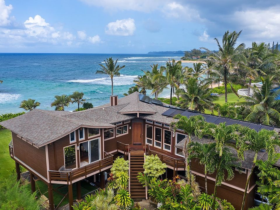 Designed for luxe island living, this contemporary estate features fine craftsmanship, quality finishes, and unparalleled attention to detail. The great room, has floor-to-ceiling windows and doors, inviting in abundant natural light and stunning ocean views. The designer kitchen has teak cabinetry, stainless steel appliances and a large center island. An infinity-edged Davinci spa is ideally situated to capture spectacular sunrises and sunsets over the ocean. This extensively updated, custom home is situated on a beachfront parcel of over 1/2-acre in size. Expansive views of the coastline and breaking surf fill the central great room. The large, resort-like master bedroom suite has incomparable ocean views, as well as an impressive view of the rugged mountains of Ha`ena and the cascading Manoa Falls. The use of natural materials like lava rock and teak and the high-tech features including a security system, retractable shades, automatic hurricane shutters, a photovoltaic array, and two Tesla Powerwalls, this home will impress the most discerning buyer. Access to the beach and ocean are directly from the parcel, with the world-famous "Tunnels Lagoon" at your doorstep. Incredible surfing, snorkeling, beach-combing, kite-surfing, and diving are all readily accessible. Other notable features include: * A Custom Home Gym * Split zoned Daikin A/C system in All Rooms * Home Office * 15' High Vaulted Ceilings with Exposed Beams * Ocean-view Master Bath w/ Over-sized Freestanding Volcanic Tub * Natural Quartzite Countertops in Kitchen & Baths * Large Walk-in Closet W/ Built-ins * Master Bedroom (19' x 24') w/ Vaulted Ceiling * New Fleetwood Sliders in the Living and Dining Room * New Lava rock shower, wall and elevated lava rock planters * Expansive Ipe Lanai 1st PLACE WINNER IN HGTV's ULTIMATE HOUSE HUNT 2015 - Best Glass House in the USA! Truly a stylish and refined masterpiece!