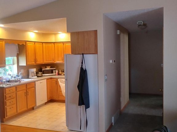 This functional little house at the end of a quiet street has all you need! It features two bedrooms and 1.5 bathrooms, with a natural gas stove in the living area. A concrete driveway beside the house leads back to a 24'x34' garage with a covered awning out front and a separate room that is insulated and wired for whatever project or extra space you may enjoy. The backyard offers raised garden beds ready for your planting enjoyment.