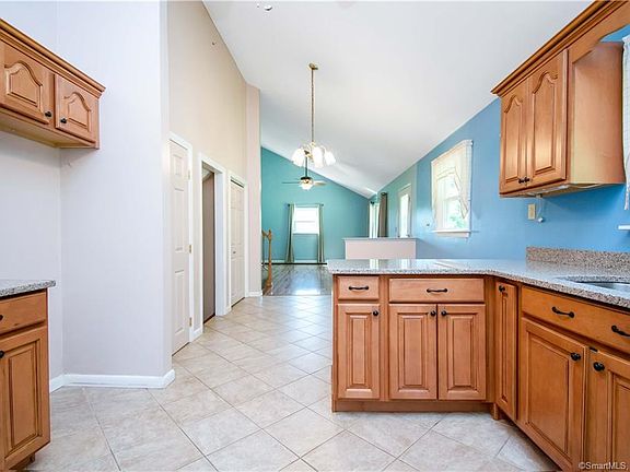 Nicely updated split level home sitting on a gorgeous 1.06 acre lot with sprawling views of 25 acres of land protected by the Wyndham Land Trust. This home features many improvements including a new roof, water heater, updated kitchen, and whole house generator. Loft ceilings in the living room open to the kitchen make the main living area spacious and bright. Upstairs you will find 3 bedrooms and 1 full bath. Downstairs is a partially finished walk out basement, with a built in bar and set up for a pellet stove. The septic system is out of code and in poorly operating condition. This house is being sold as.