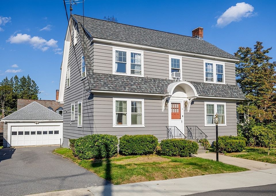 Step into this bright and beautiful Dutch Colonial Revival full of character and warmth! The heart of the home is the spacious kitchen featuring stainless steel appliances, an abundance of cabinets & counter space, plus a charming built-in bench that creates the perfect little eat-in nook. French doors invite you into the formal dining room, highlighted by a built-in China cabinet, while another set of French doors opens into the living room with a cozy fireplace. Off the living room find a sunroom that floods the space with natural light. A convenient half bath on the 1st floor is perfect for guests. Upstairs, the primary bedroom offers hardwood floors & 2 closets, with 3 additional bedrooms & a full bath completing the 2nd level. The partially finished basement provides even more space with a bar and half bathroom, ideal for entertaining. The walk-up attic offers potential to finish & add value with even more living space! Enjoy a field & playground across the street. Close to Rt 2!