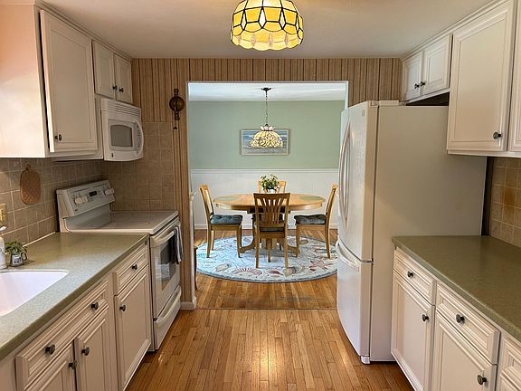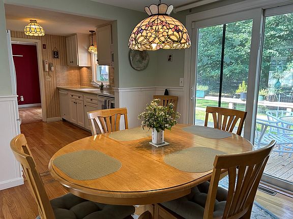 A designated Pollinator Garden, this ranch home with garage sits on .35 acres of land. A short brick path leads you to a covered door where you enter the front to back family room with slider to deck, turn the corner to the galley style kitchen with updates including corian counters and appliances. The dining area has a slider to the huge deck overlooking a woodsy back yard and small fenced area, there is a new outdoor shower enclosure easily accessed from the deck or walk out basement. Newer furnace and double lined oil tank, newer hot water heater, there is irrigation on the property and a house alarm system. The brand new bathroom enjoys tile and bead board just finished in 2023. There are 3 bedrooms and wood floors throughout the home. The living room enjoys a wood burning fireplace with built in book shelves on each side. The living room window overlooks many indigenous plants such as butterfly milkweed, mountain mint, and goldenrod attracting all kinds of birds and butterflies.
