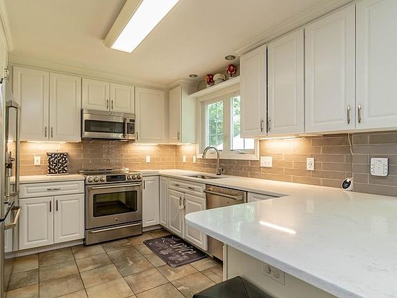 Tucked away from it all is this gorgeously-maintained Cape home! The incredibly private lot & meticulously manicured landscaping will be first to "wow" you. Step inside to find that all upgrades are done & the renovations are stunning! The complete kitchen makeover features Quartz countertops, Spanish tile backsplash, GE Cafe Series appliances, Delta touch faucet & an exquisite new chandelier! Hardwood lies in the open living room, custom blinds hang throughout & a Smart thermostat will keep this home comfortable all year long. A first floor master offers a luxurious bath, essential walk-in closet & an attached 3-season sunroom with fireplace ~ perfect spot to cozy up with a book or sip an evening cocktail. The second floor offers two more generous-sized bedrooms and a full bath. The basement is fully finished for game day & is a true entertainer's dream! Grill outside & dine on your private patio & enjoy the peaceful surroundings. Look no further ~ this home truly has it all!