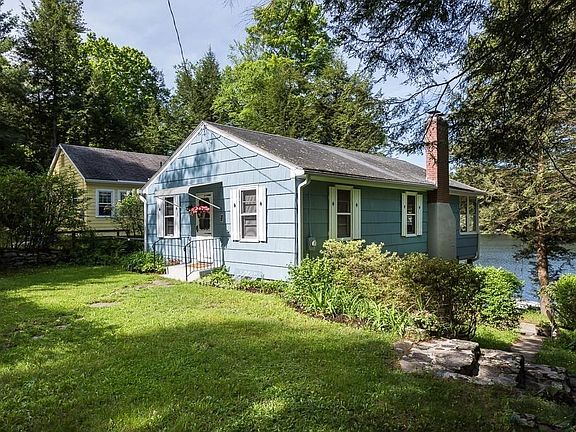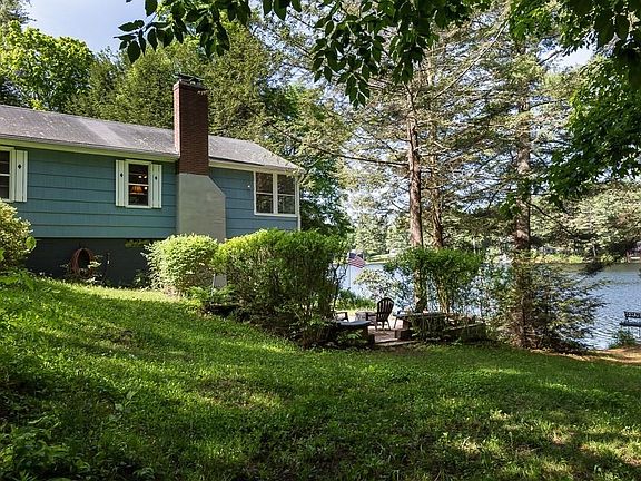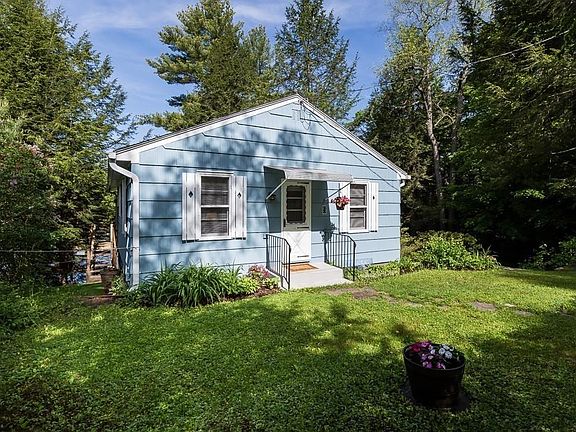 IDEAL WATERFRONT VACATION HOME! Opportunity to own a 3 season cottage in one of the areas premier waterfront properties. Offered as a turn key purchase, it includes all furniture,appliances,14.2 CAPRI SAILBOAT, double kayak, 2 single kayaks, 12' aluminum fishing boat, 2 electric trolling motors, marine battery, and tools. The kitchen has been renovated with new cabinetry, appliances and granite counter tops. New flooring throughout. The basement with 8 foot ceilings provides storage for boats, a work bench area, and washer/dryer hookups. Close enough, but far enough to get away, drop a line, cook out, take a dip, pick blueberries by the water's edge, paddle or sail a canoe, kayak or boat, and WATCH SUNSETS ACROSS THE LAKE from the enclosed porch, deck, or patio. The outdoor areas are perfect for hosting summer parties. The DOUBLE lot features a permanent dock, a raft, a beach and sun and shade areas. The options for relaxation and recreation are endless!