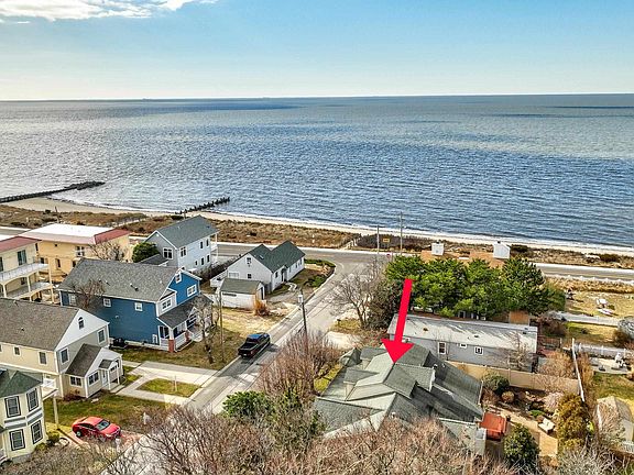 BEAUTIFUL SUNSETS & WATERVIEWS FROM THE FRONT PORCH WITH GAZEBO. Imagine sitting on your front porch sipping a cup of coffee or tea, enjoying the views and the sound of the waves lapping on the sand. This lovely home was completely remodeled in 2004. The home offers a large open dining room with sliders to the front porch, kitchen with island and bar seating, under counter lighting and living/family room with cathedral ceiling, laundry area, powder room and office. The master bedroom on the first floor offers cathedral ceiling, walk in closet, shower, soaking tub and bidet and tile flooring. The entire first floor also features heated floors. Second floor offers two large bedrooms, full bath with shower, large closets with walk in attic storage and access to the HVAC system. The home features an attached 2 car garage with remote and keypad, 2 zone heating/air. Outside features lawn irrigation system in front yard, deck and paver patio in backyard, koi pond with waterfall, outdoor shower, mature landscaping and a new sewer line in 2024 and many more amenities.