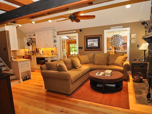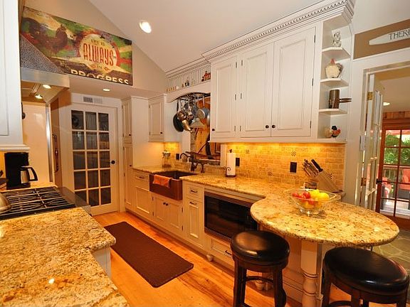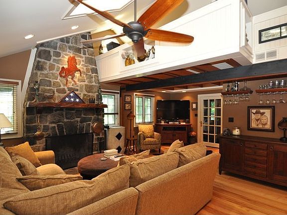 Truly unique and special, this one of a kind custom log & stone home has been completely upgraded to include all of today's amenities while keeping the feel of a private get away! New gourmet kitchenwith top of the line appliances and copper farm sink, wide plank hickory floors; new windows, roof, paver patio and fencing. Dining/Sitting room with Blue stone radiant heat floors; Downstairs bathroom features custom made wine barrel vanity with copper sink. Extensive outdoor entertaining areas overlooking private backyard complete with babbling brook. You will feel "away from it all" and yet have convenient access to NYC transportation, shopping, dining as well as premier schools system in one of Money Magazine's "Best Towns to Live In". Live Happily Ever After in this enchanted one of a kind "Hidden Gem"!