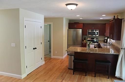 Relax on your front porch and enjoy this 5 years young charming colonial home. The kitchen area featuring stainless steel appliances, granite countertops, and a large pantry, overlooking a breakfast area. The open floor plan continues into the spacious living room where you can cozy up to the gas fireplace. A separate dining room and half bathroom with laundry finishes off the first floor. The two story foyer leads up to 4 spacious bedrooms. Your large master bedroom features a huge walk in closet and master bath with a beautifully tiled Jacuzzi tub and an oversized shower. Add in an attached two car garage, central air, potential for finishing of the expansive basement, and a back deck overlooking a yard with vinyl fencing and expansion potential, and it's a no brainer! It's a great family cul de sac location only minutes to shopping, highway, and T-Station.