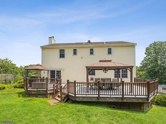 Amazing outdoor living space 1 acre. Room for pool & play! 3 living levels, private en-suite/in-law/home office. 40x26 Bonus garage/workshop or studio. Fenced landscaped yard. Many updates. 1 hr NYC New kitchen w/granite counters, under & interior cabinet lighting, stainless appliances. Breakfast bar open to eat-in overlooking back yard & family rm with new flooring & fireplace. Formal dining rm, Formal living rm & bonus 1st floor office/den. 2nd level 4 bedrms, 2 full baths, laundry rm. Master suite walk-in closet & new luxury bath rm. Lower level offers 5th bedrm en-suite w/full bath, large storage area and oversized 2 car attached garage. Bring your idea to this 1 acre lot. Incredible detached outbuilding w/separate electric. Optional Shore Hills Beach/Club swiming/boating & gym. Walk to park & tennis.